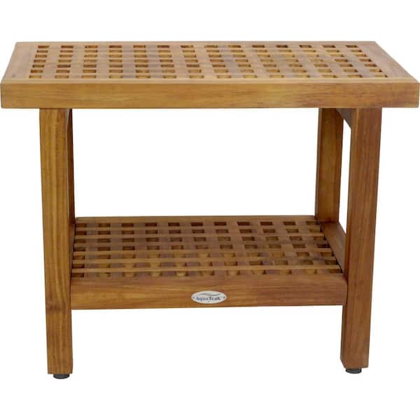The Original 24 in x 14 in Grate Freestanding Teak Shower Bench with Shelf Walk In Shower Seat