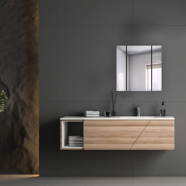 Royale 36 in W x 36 in. H Rectangular Tri-View Medicine Cabinet with Mirror Defogger and 3X Removeable Magnifying Mirror