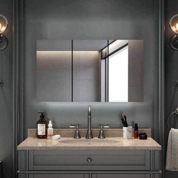 Royale 60 in W x 30 in. H Rectangular Tri-View Medicine Cabinet with Mirror Defogger and 3X Removeable Magnifying Mirror