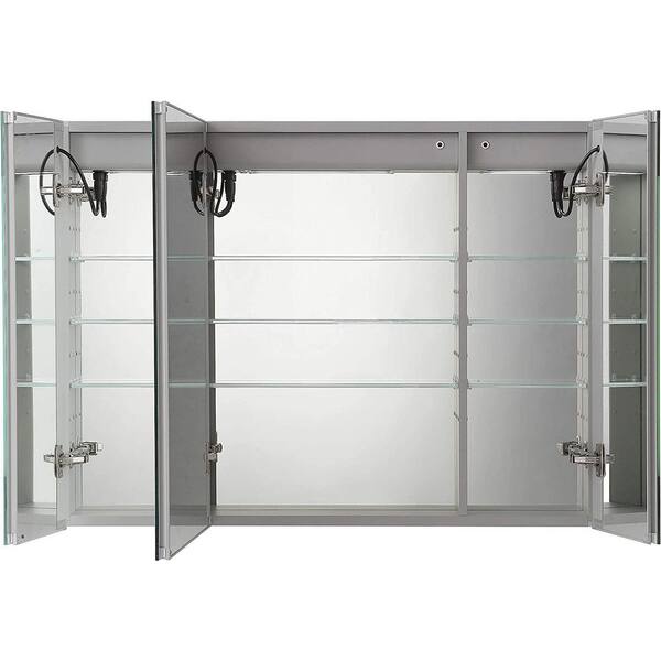 Signature Royale 48 in. W x 30 in. H Clear Recessed/Surface Mount Medicine Cabinet with Mirror, Tri-View Doors, Defogger
