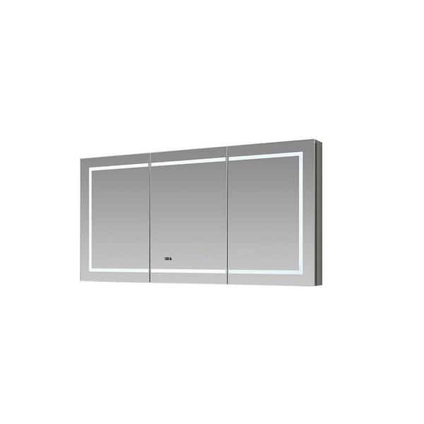Signature Royale 60 in W x 30 in. H Rectangular LED Tri-view Medicine Cabinet with Mirror Defogger, 3X Magnifying Mirror