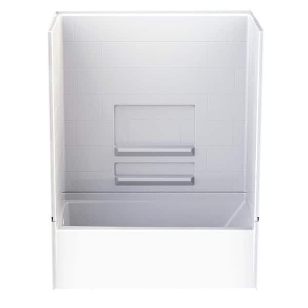 Varia Subway Tile 60 in. x 30 in. x 76 in. AcrylX Acrylic Finished 4-Piece Bath and Shower Kit with Left Drain in White