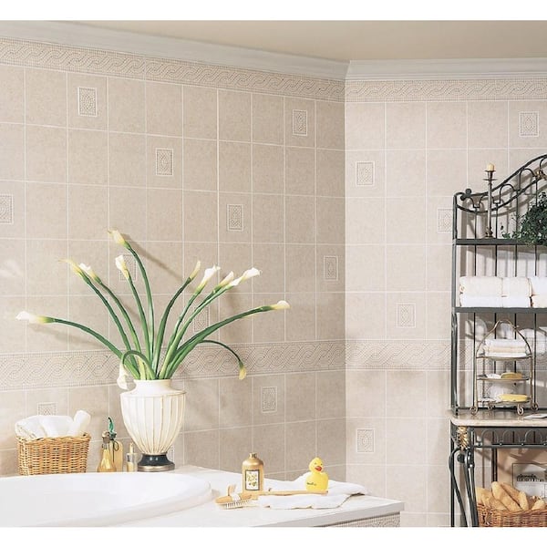 Mosaic detail gives tile appearance with no grout to clean