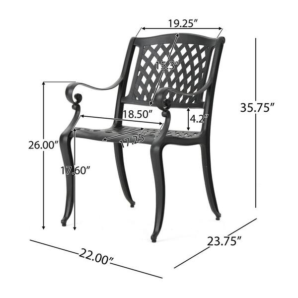 Arch Mesh Chair Set of 2-Cast Aluminum Outdoor Dining Chairs, Weather-Resistant, Black Finish