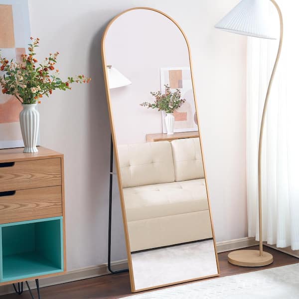 Arched Aluminum Mirror Full Length Mirror Free Standing Mirror Aluminum Frame for Modern Living 71 in. x 31 in., Gold
