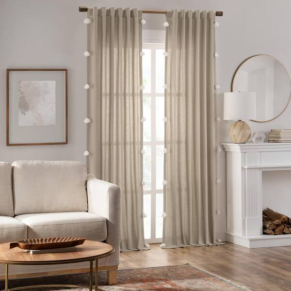 Ardmore Linen Solid Cotton 50 in. W x 108 in. L Light Filtering Single Rod Pocket Back Tab Curtain Panel with Tassels