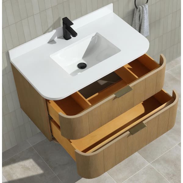 Chantal 36 in. W x 21 in. D x 22 in. H Single Bath Vanity in Oak with Engineered Quartz Top in White with White Basin