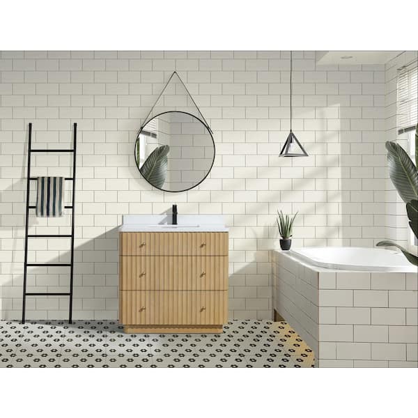 La Jolla 36 in. W x 22 in. D x 34.5 H Single Bath Vanity in Washed Oak w/ Engineered Quartz Top in White w/ White Basin