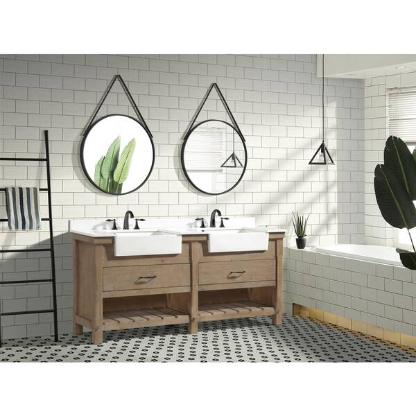 Marina 72 in. W x 20.5 in. D x 34.50 in. H Bath Vanity in Brown with White Engineered Stone Top w/White Farmhouse Basin