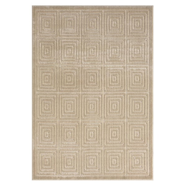 Arlo Beige 5 ft. x 7 ft. Geometric High-Low Polypropylene Indoor/Outdoor Area Rug