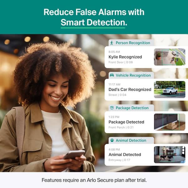 • Motion alerts, live video & remote siren control
