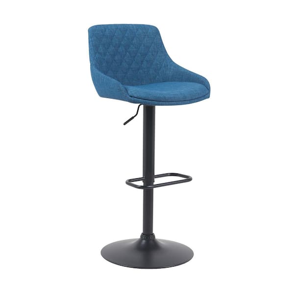 Anibal Adjustable Counter Height Blue Upholstered Swivel Barstool