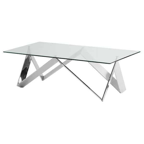 Armen 51 in. Clear/Polished Steel Large Rectangle Tempered Glass Coffee Table