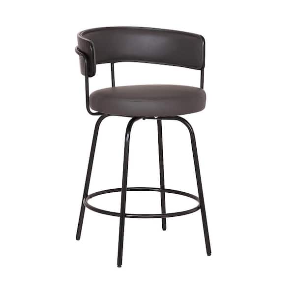 Avalon 30" Gray Faux Leather Swivel Bar Stool in Black Powder Coated Finish