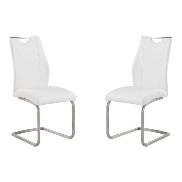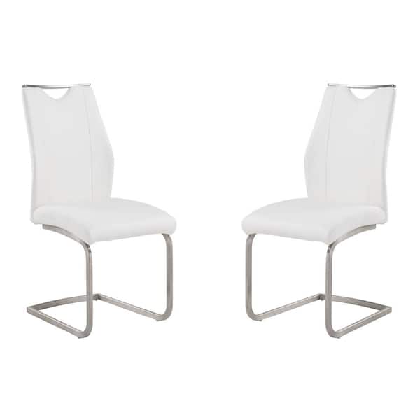 Bravo 39 in. White Faux Leather and Brushed Stainless Steel Finish Contemporary Dining Chair (Set of 2)