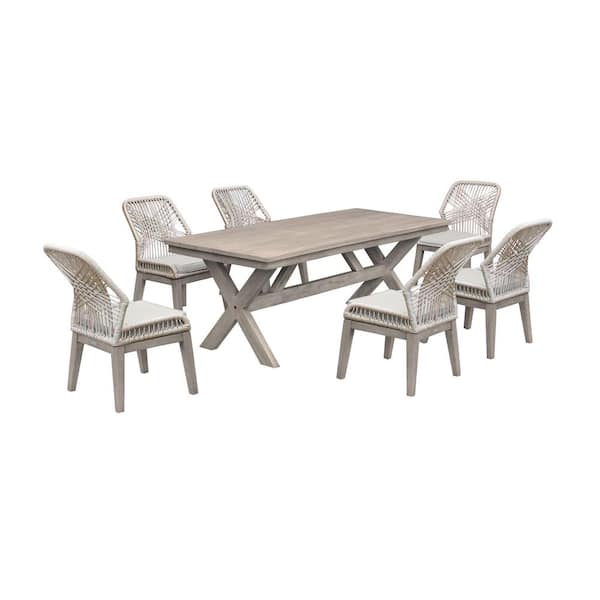 Costa 7-Piece Acacia Wood Rectangular Outdoor Dining Set with Grey Cushions