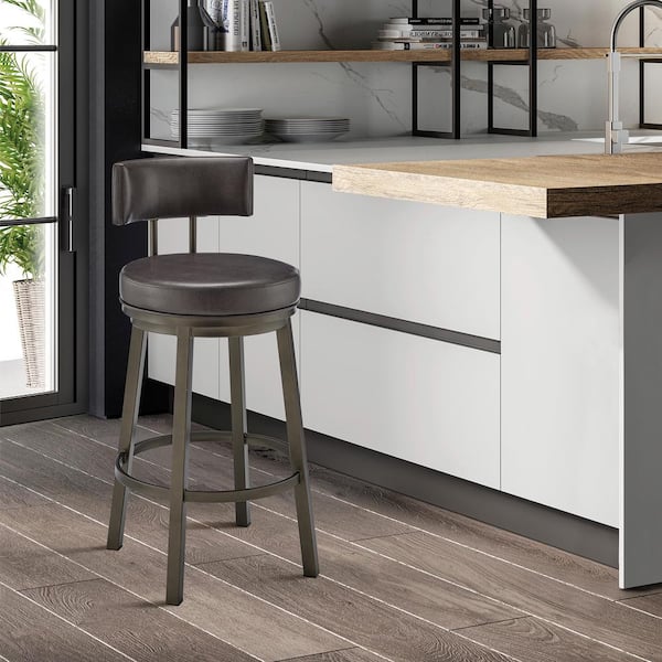 Dalza 40 in. Brown 30 in. Bar Stool with Faux Leather Seat