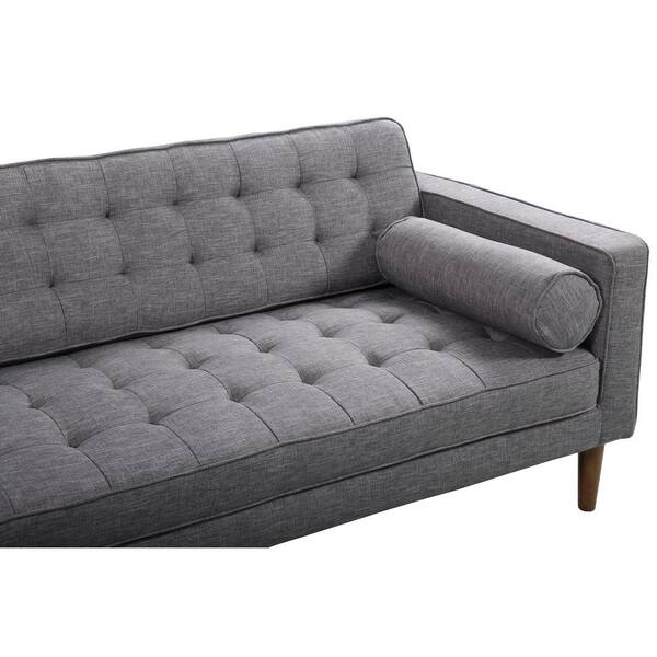 Element Right-Side Chaise Sectional in Dark Gray Linen and Walnut Legs