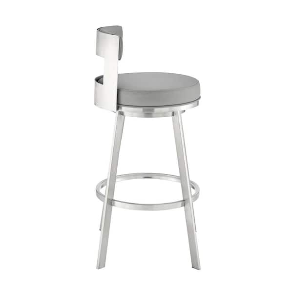 Flynn 26 in. Light Gray/Brushed Stainless Steel Low Back Metal Counter Stool with Faux Leather Seat