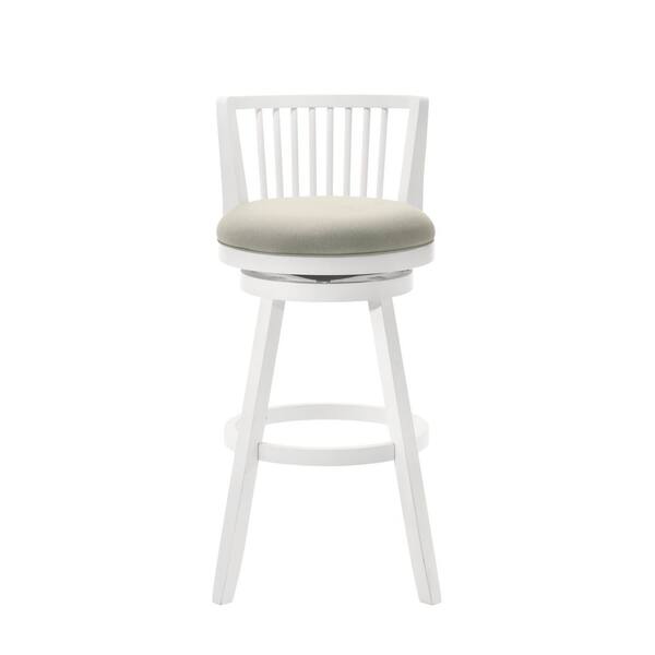 Harper 30 in. Fog/Matte White Rubberwood Bar Stool with Fabric Seat