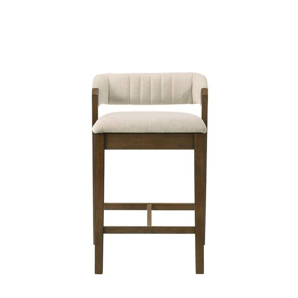 Landyn 26 in. Ecru/Sepia Brown Rubberwood Bar Stool with Fabric Seat