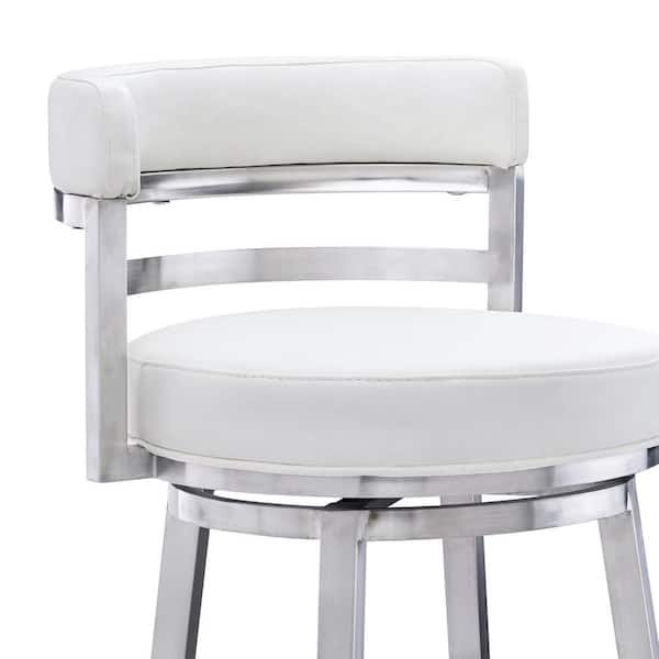 Madrid Contemporary 26 in. Counter Height Bar Stool in Brushed Stainless Steel and White Faux Leather