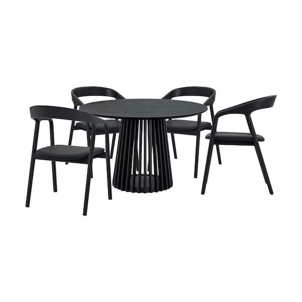 Pasadena Apache 5-Piece Round Black Wood Top Dining Room Set Seats 4