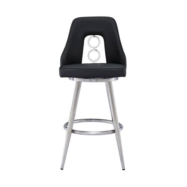 Perrin Contemporary 30 in. Bar Height in Brushed Stainless Steel Finish and Black Faux Leather Bar Stool