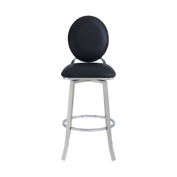 Pia Contemporary 26 in. Counter Height Bar Stool in Brushed Stainless Steel and Black Faux Leather