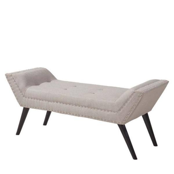 Porter Taupe 20 in. H x 51 in. W x 17 in. D Ottoman Bench in Fabric with Nailhead Trim and Espresso Wood Legs