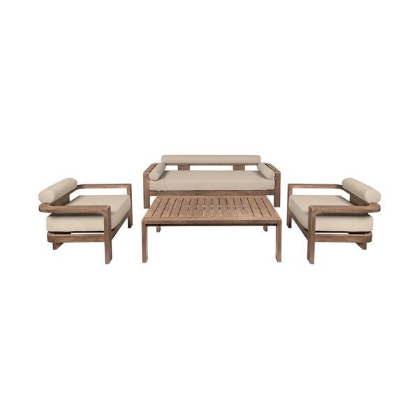 Relic Light Brown 4-Piece Eucalyptus Wood Patio Conversation Set with Taupe Cushions
