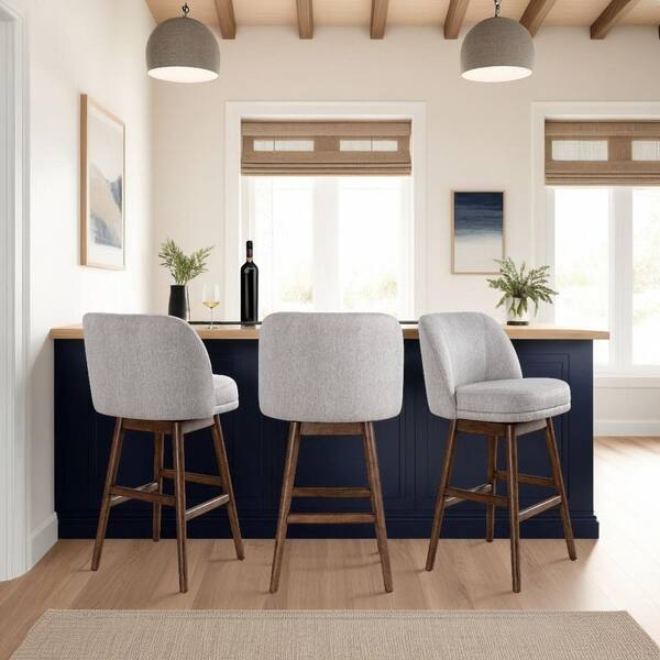 Sadie 30 in. Taupe/Brown Oak Low Back Rubberwood Bar Stool with Polyester Seat Set of 4