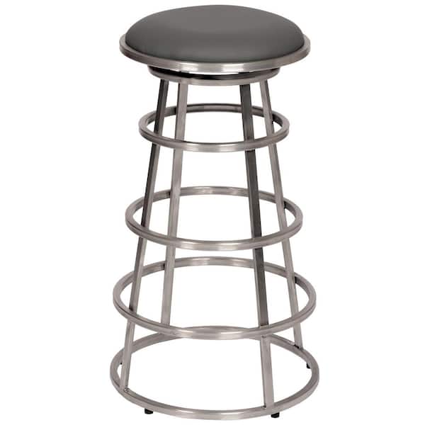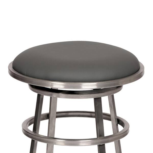 Sheryl 26 in. Backless Brushed Stainless Steel Bar Stool in Gray Faux Leather