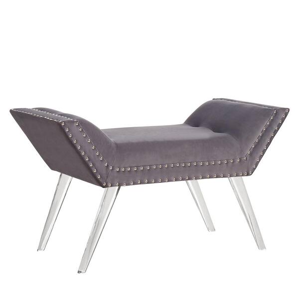 Silas Gray 20 in. H x 36 in. W x 17 in. D Ottoman Bench in Tufted Velvet with Nailhead Trim and Acrylic Legs