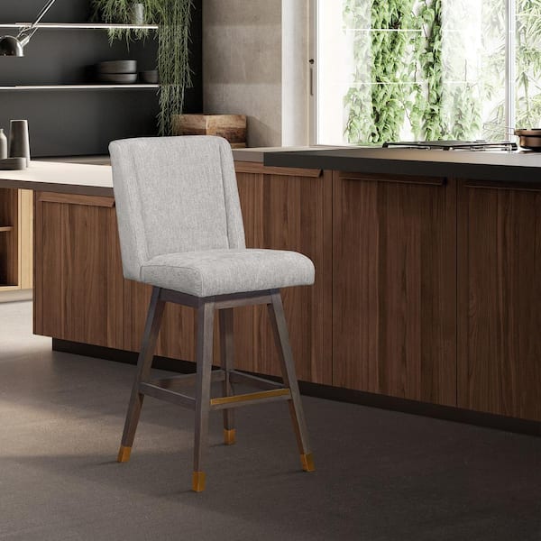 Stancoste 40 in. Grey Oak Swivel Bar Stool with Mocha Fabric Seat