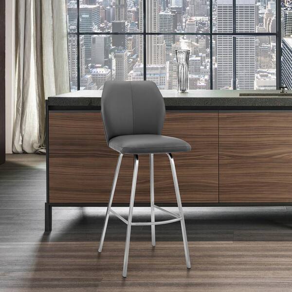 Tandy 30 in. Barstool w/ Gray Faux Leather High Back and Brushed Stainless Steel