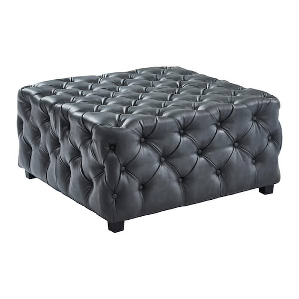 Taurus Grey Faux Leather Contemporary Ottoman with Wood Legs