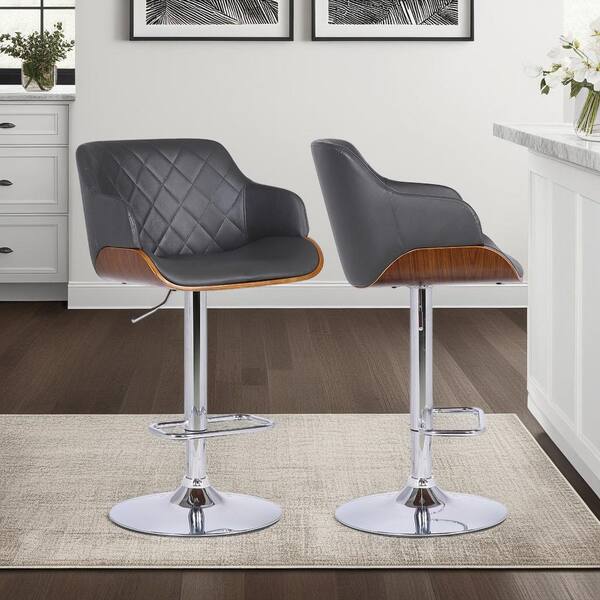 Toby Contemporary Adjustable Chrome with Grey Faux Leather and Walnut Bar Stool