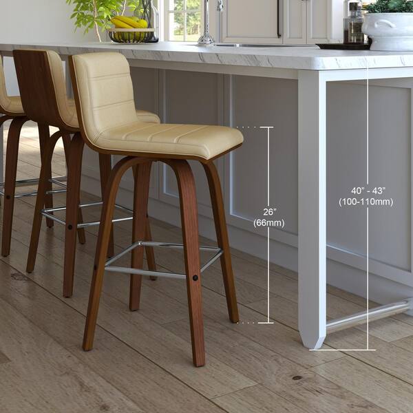 Vienna 26 in. Counter Height Bar Stool in Walnut Wood Finish with Cream Faux Leather