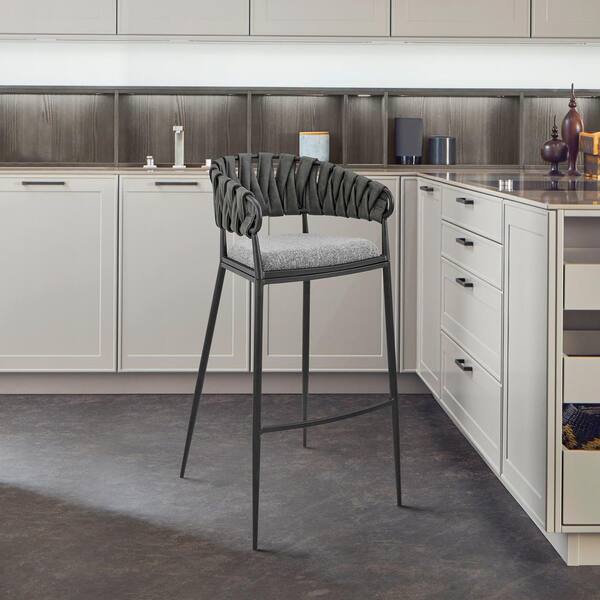 Vigona 35-39 in. Grey Metal 30 in. Bar Stool with Faux Leather Seat