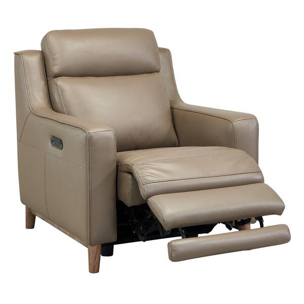 Wisteria Light Brown Wood and Taupe Genuine Leather Contemporary Chair