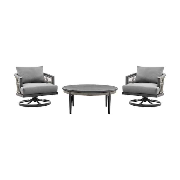 Zella Warm Gray 3-Piece Aluminum Patio Conversation Set with Earl Gray Cushions