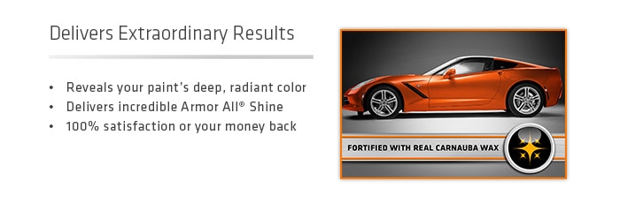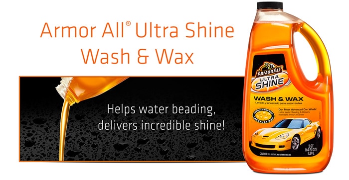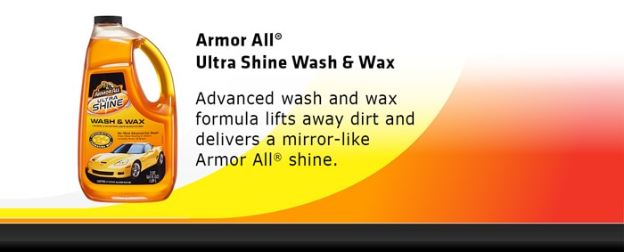 Armor All Ultra Shine Wash and Wax gently lifts away dirt, promotes water beading and delivers mirror-like shine to your vehicle. Developed using the most advanced technologies available, this car wash features a proprietary blend of cleaning agents, surface lubricants and real carnauba wax designed to meet the most exacting auto care standards. Use this car wash and wax any time your car is dirty to reveal the paint's deep, radiant color and shine. Safe for all vehicle surfaces, this car wash soap with automotive wax is the perfect addition to your car cleaning supplies, whether you're washing your motorcycle, classic car or daily ride.