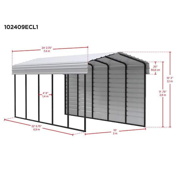 10 ft. W x 24 ft. D x 9 ft. H Charcoal Galvanized Steel Carport with 1-Side Wall Kit