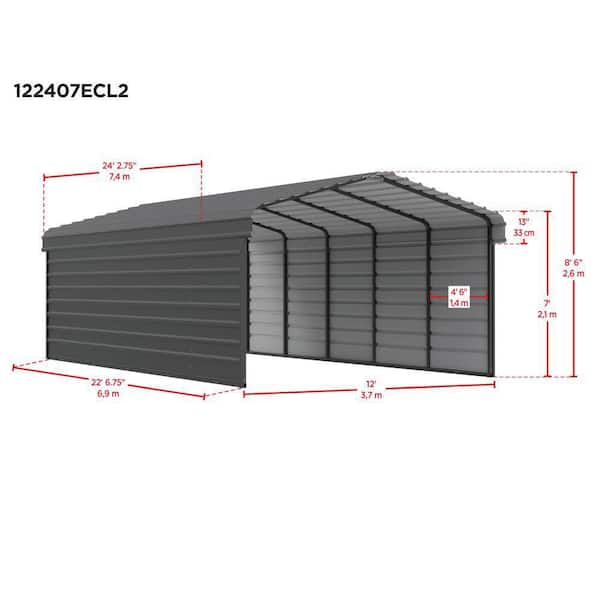 12 ft. W x 24 ft. D x 7 ft. H Charcoal Galvanized Steel Carport with 2-Side Wall Kits