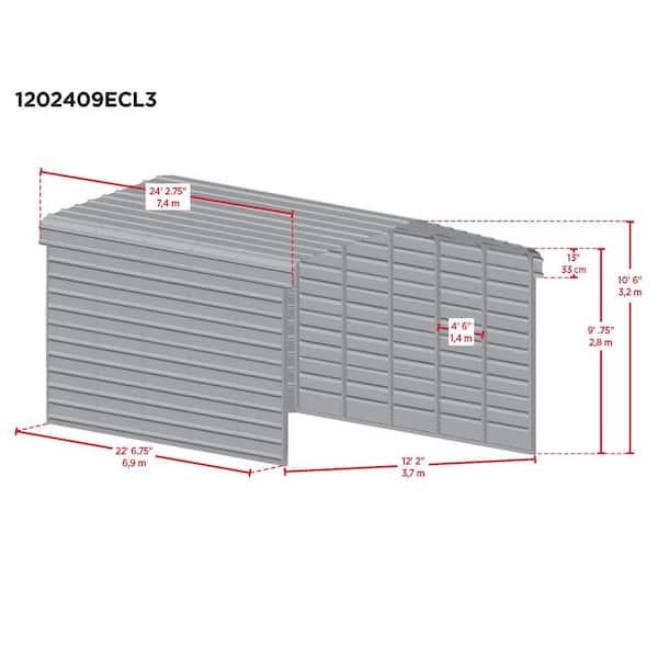 12 ft. W x 24 ft. D x 9 ft. H Eggshell Galvanized Steel Carport with 3-Sided Enclosure