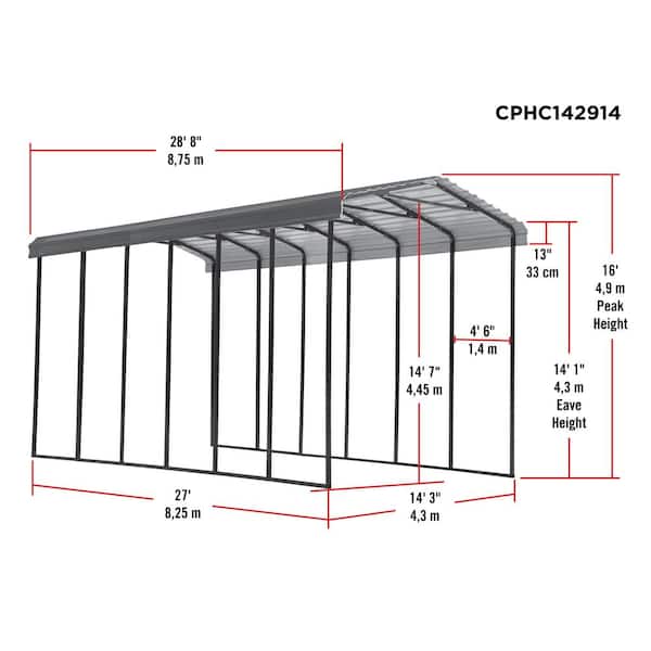 14 ft. W x 29 ft. D Galvanized Steel Charcoal Finish RV Carport