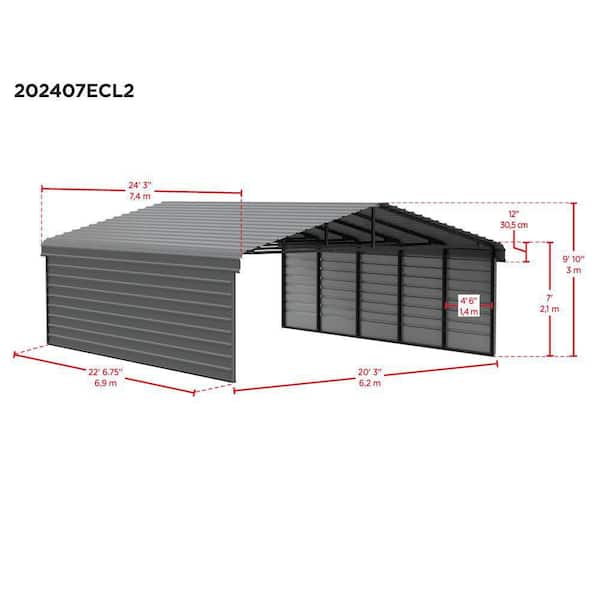 20 ft. W x 24 ft. D x 7 ft. H Charcoal Galvanized Steel Carport with 2-Side Wall Kits