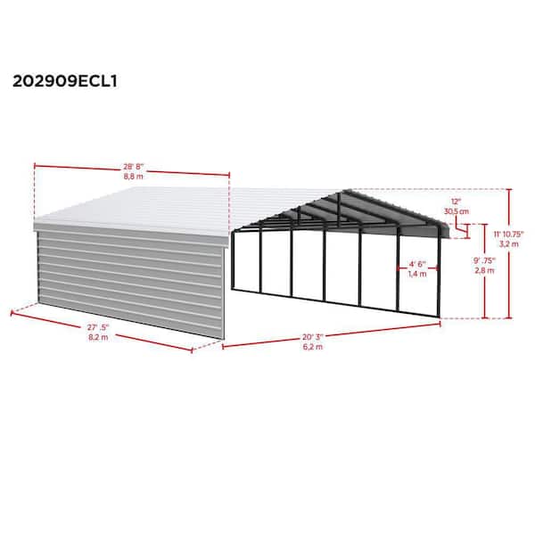 20 ft. W x 29 ft. D x 9 ft. H Charcoal Galvanized Steel Carport with 1-Side Wall Kit