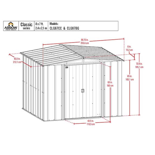 8 ft. x 7 ft. Grey Metal Storage Shed With Gable Style Roof 51 Sq. Ft.